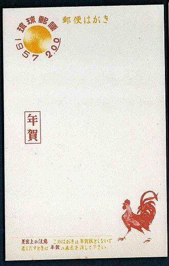 〔琉球郵政庁(沖縄が米国統治下にあった時代に、郵便・電話などの通信を管理していた機関)が発行した1957年2ドル年賀はがき〕